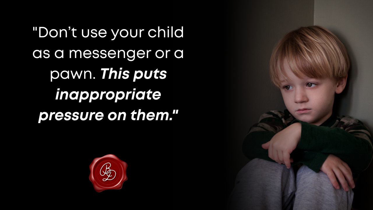 - Don’t use the child as a messenger or a pawn (e.g., “tell Dad to pick up your soccer bag”). This puts inappropriate pressure on the child. (Child Mind Institute)